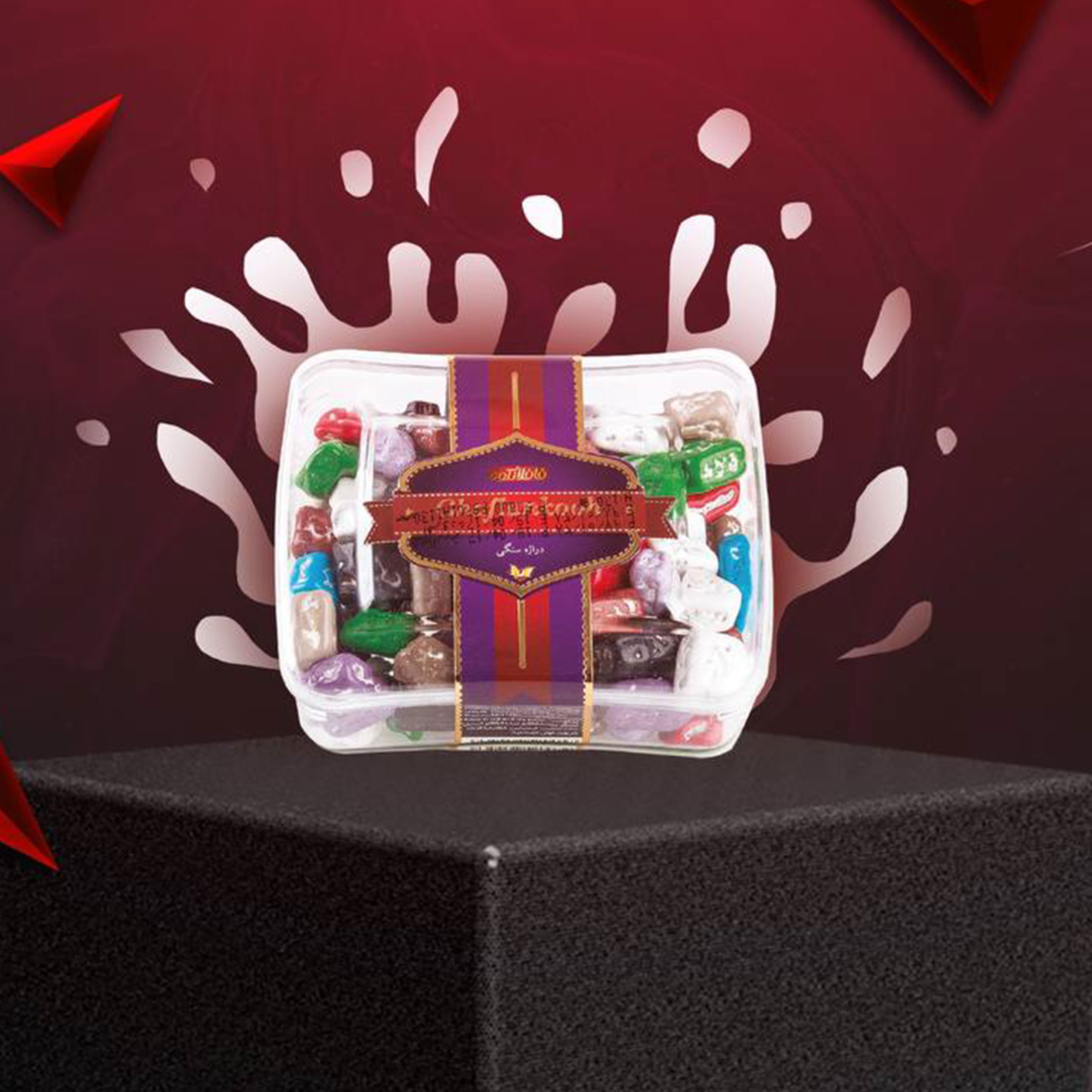 ترکیبات: شکر، روغن جانشین کره کاکائو، پودر کاکائو، شیر خشک، نشاسته ذرت، رنگ مجاز خوراکی