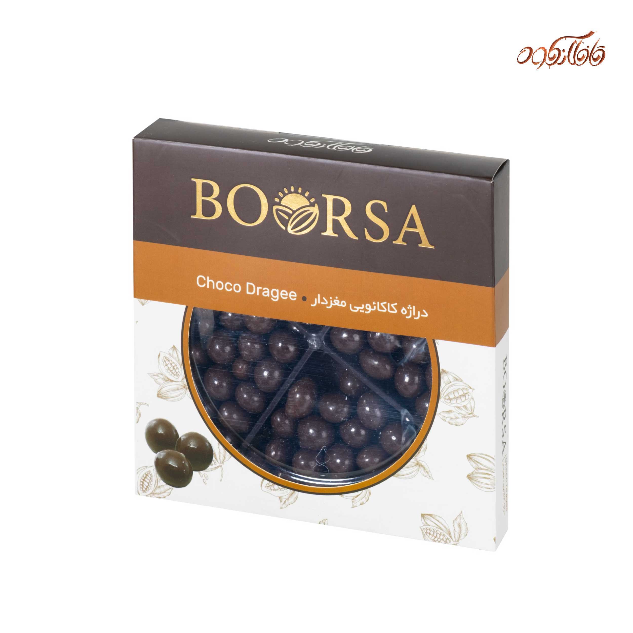 شامل 300 گرم شوکو دراژه با مغزهای کشمش، نخود و بادام زمینی